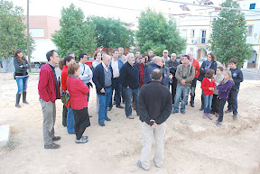Los arqueólogos explican las excavaciones al iniciar la visita / Foto: Toño Rodríguez, del Ateneo de Valencina |