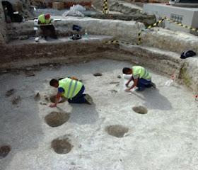 Los arqueólogos trabajan en la cabaña más grande encontrada bajo la influencia de Marroquíes Bajos, en la Carretera de Madrid. Foto: Rafael Casas |