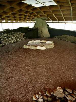 Por lo que respecta al centro de recepción de visitantes, la obra principal que está pendiente es la colocación de la réplica de la cámara. Eso permitirá a las personas que se acerquen hasta el complejo imaginar que se encuentran en el interior del dolmen y ver una copia de las pinturas y grabados rupestres.