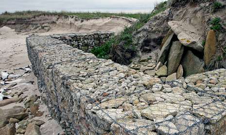 Hace año y medio las mareas descubrieron un dolmen que se protegió de la erosión con un muro. MARTINA MISER |